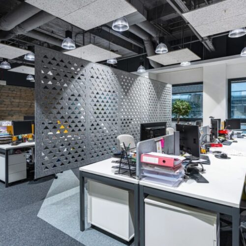 FiberColor products are soft 3D wall panels that operate at a wide frequency range. The highest sound absorption coefficient in class A reduces the reverberation time, which contributes to better speech intelligibility and increased work comfort. In addition to excellent acoustic properties, the FiberColor series panels also perform a decorative function. Over 30 shapes and as many as 46 colors of the panels.
