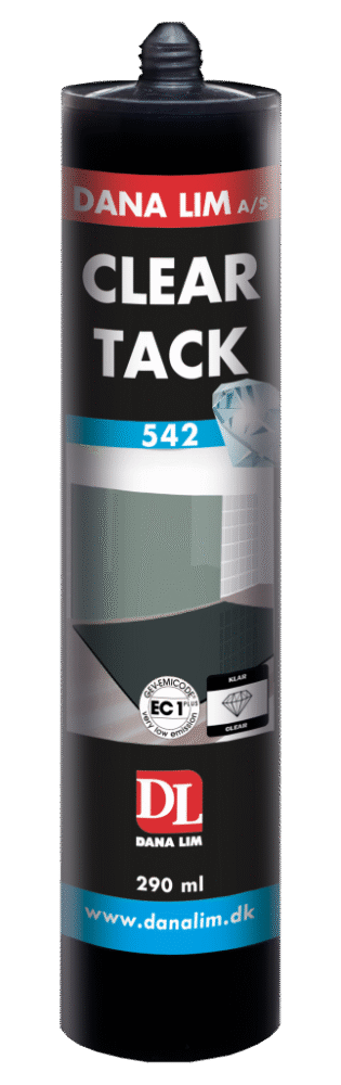 Clear Tack 542 is a transparent, strong, and elastic universal adhesive suitable for both indoor and outdoor applications. It is ideal for bonding and sealing tasks in interior construction and adheres well to most materials.